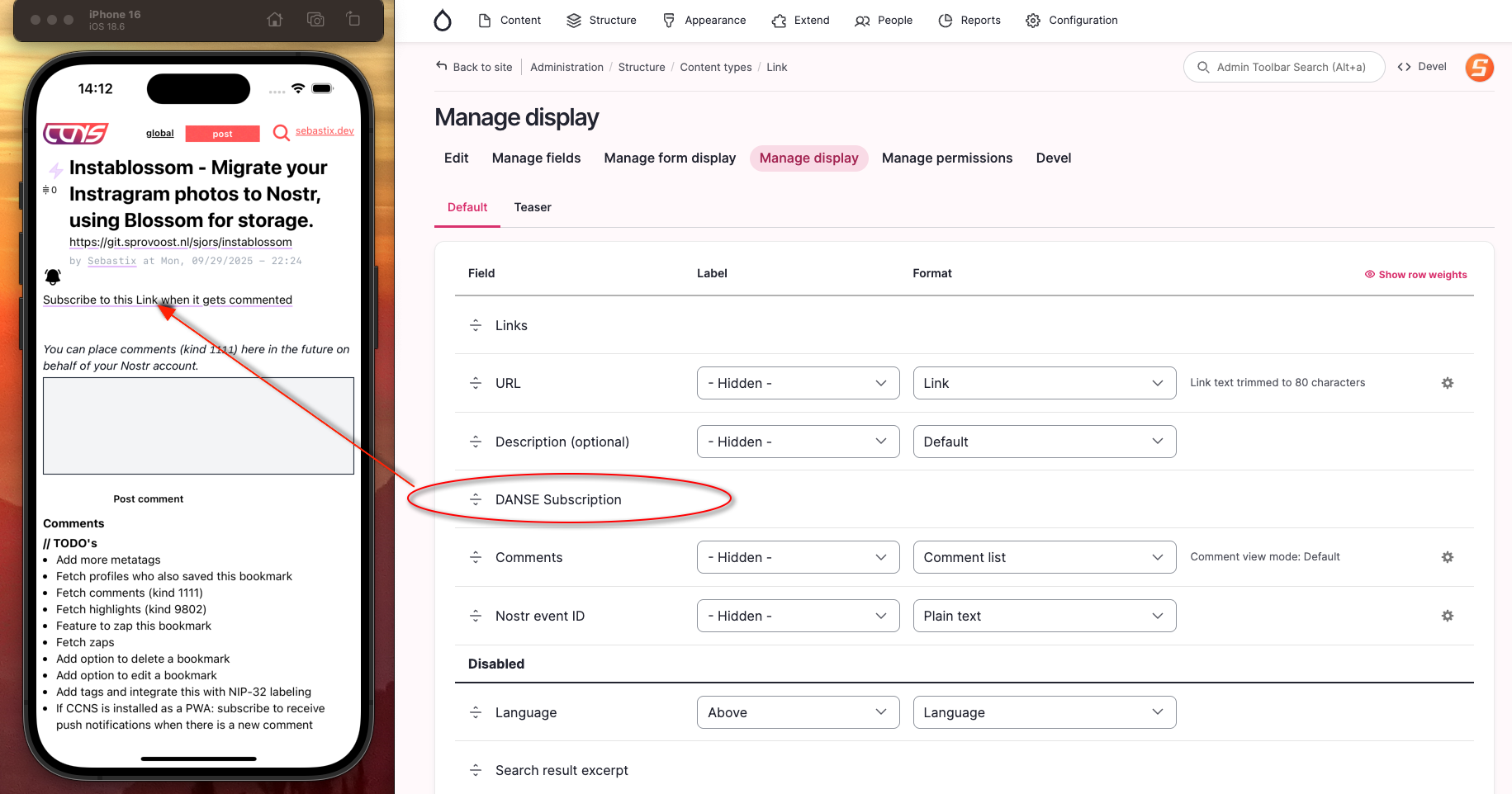 : - In this example I enabled the DANSE settings for comments on the content type Link. It’s important to also enable the DANSE settings for the comment type linked to this content type (