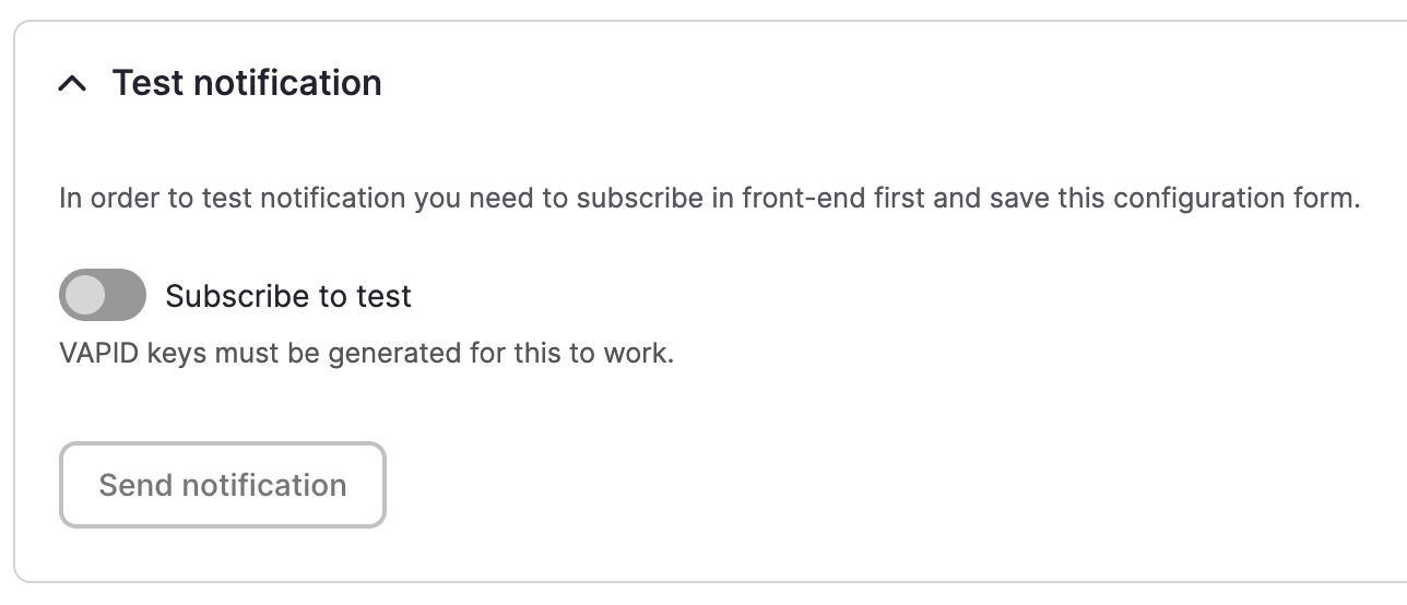 to delete the current VAPID keys, remove all subscriptions, and unregister the service worker in your browser. - Uninstall the