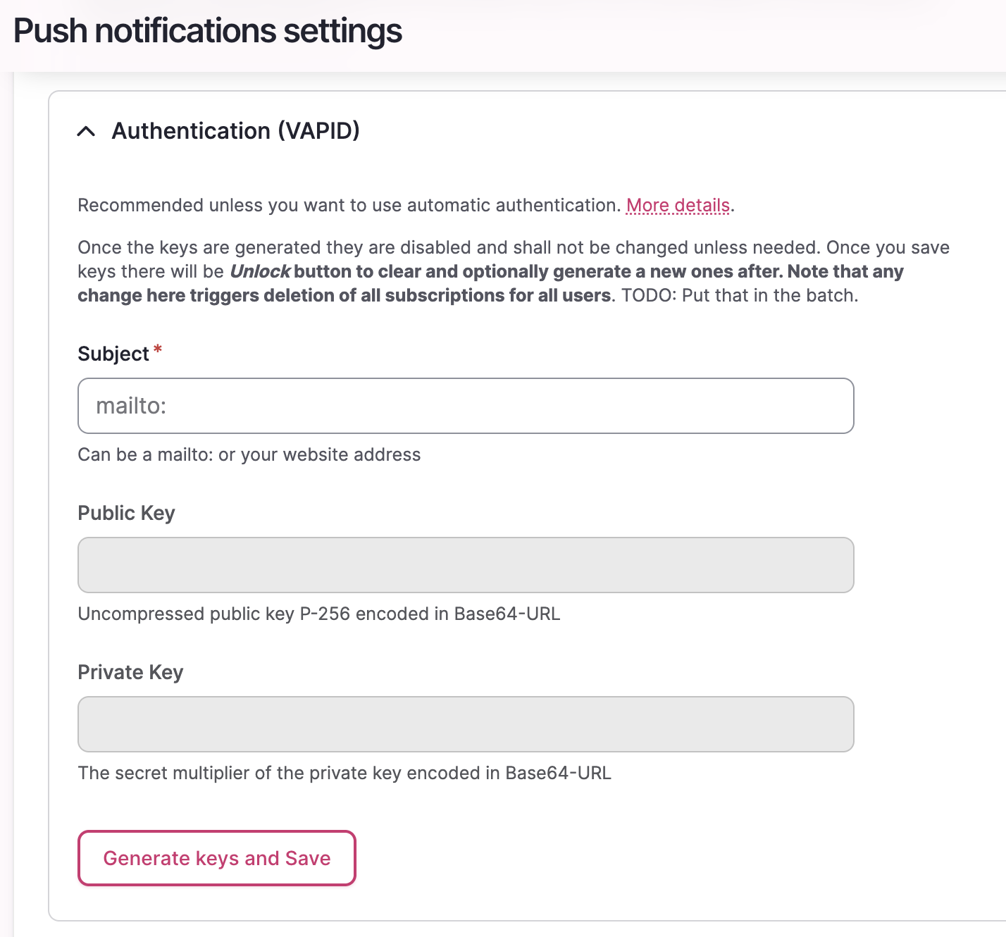 - Sending push notifications to PWA’s on iOS does not work? See https://github.com/web-push-libs/web-push-php/issues/411. I found the solution here: https://github.com/web-push-libs/web-push-php/issues/398#issuecomment-2762941713 and fixed it in this commit.
