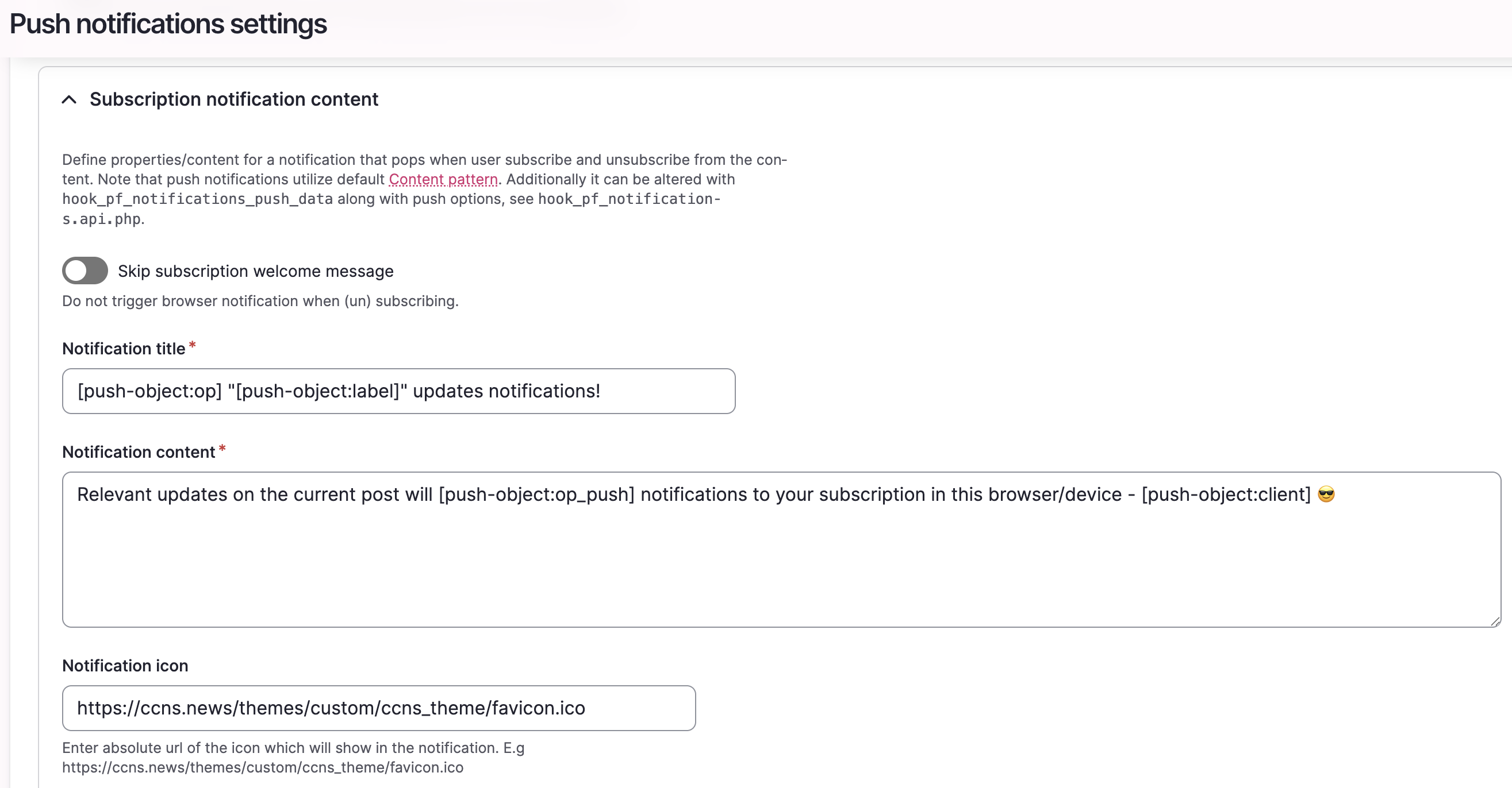 I’d like to highlight a contributed module called Push Framework Notifications and explain how this module can be integrated with your Drupal site within the Push Framework module. In this article I will demo how it works on https://ccns.news.